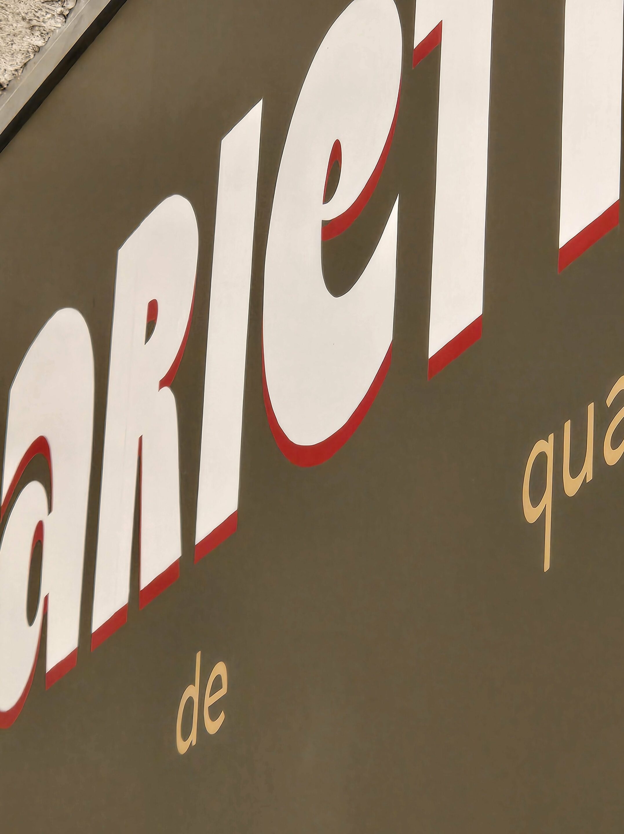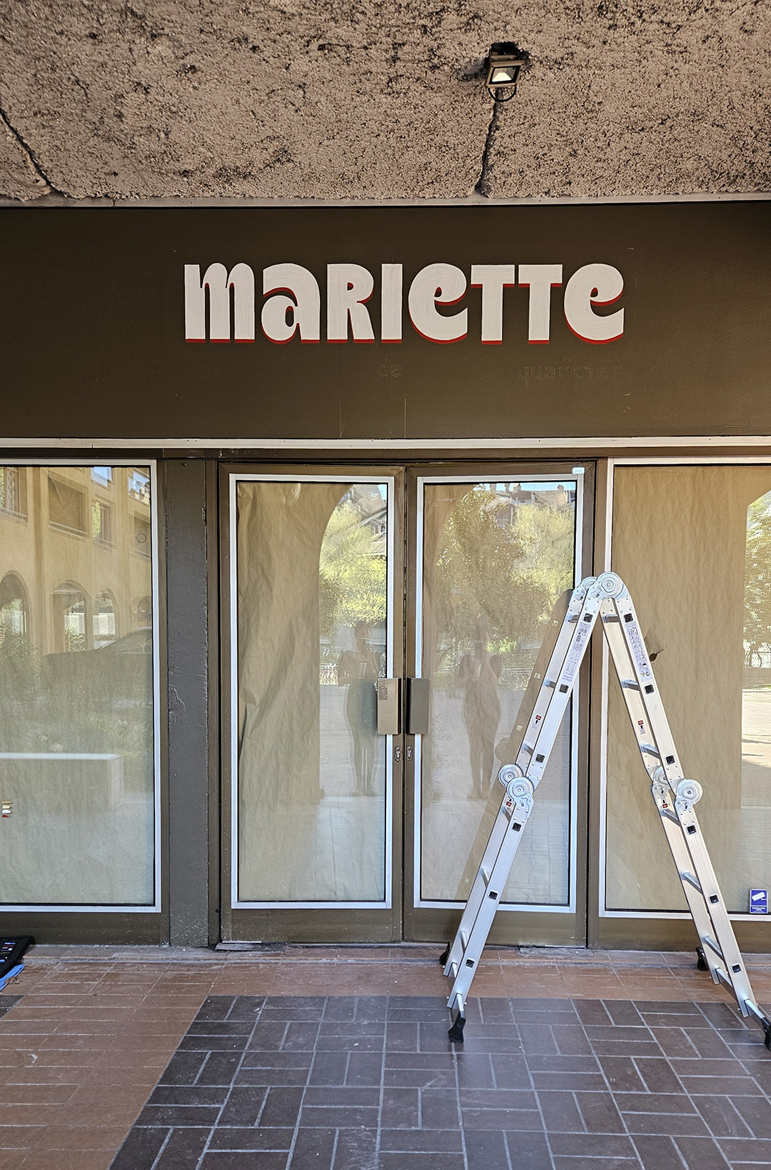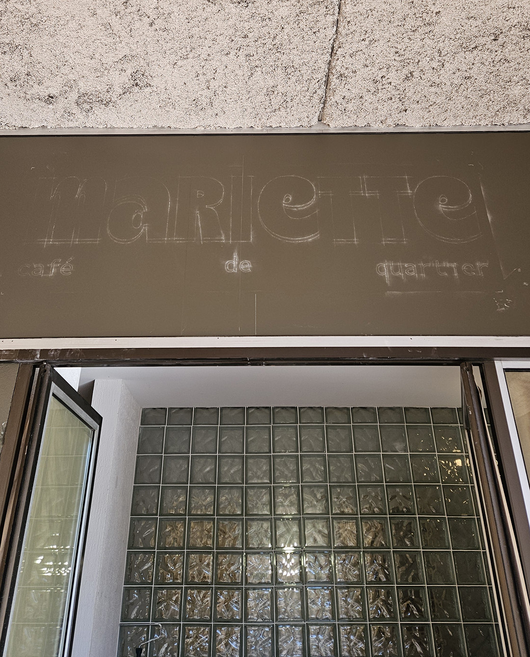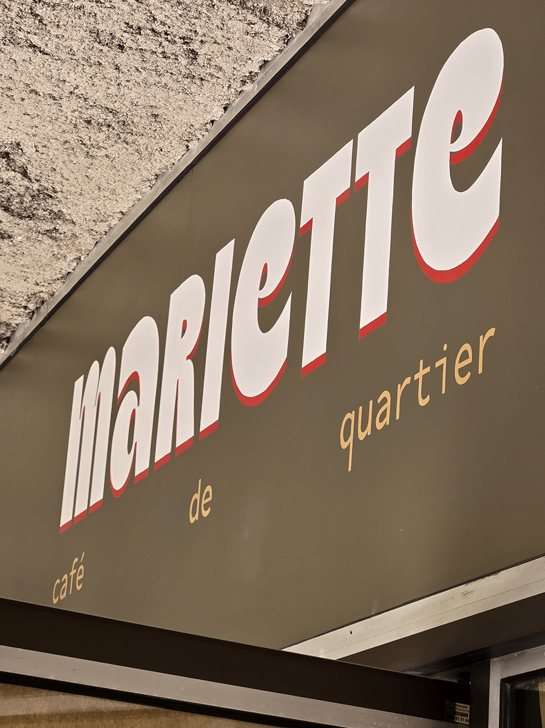 Devanture réalisée à la peinture pour Mariette, établissement spécialisé dans le café et les moments doux au bord du Thiou.